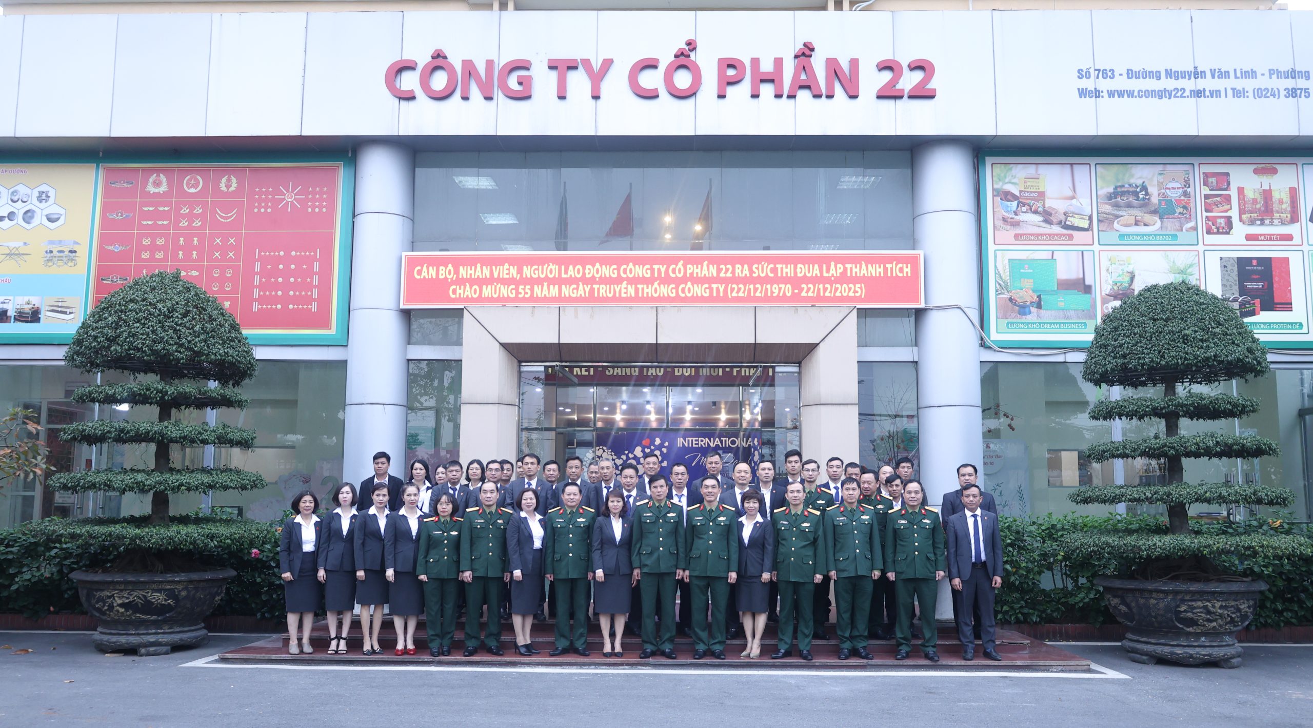 Thành lập ngày 22/12/1970, Công ty Cổ phần 22 trực thuộc Tổng cục Hậu cần – Kỹ thuật, Bộ Quốc phòng. Với hơn 50 năm hình thành và phát triển, Công ty đã khẳng định được vị thế trong lĩnh vực chế biến thực phẩm và sản xuất cơ – kim khí, phục vụ hiệu quả cho Quân đội và đáp ứng nhu cầu của thị trường dân sinh.