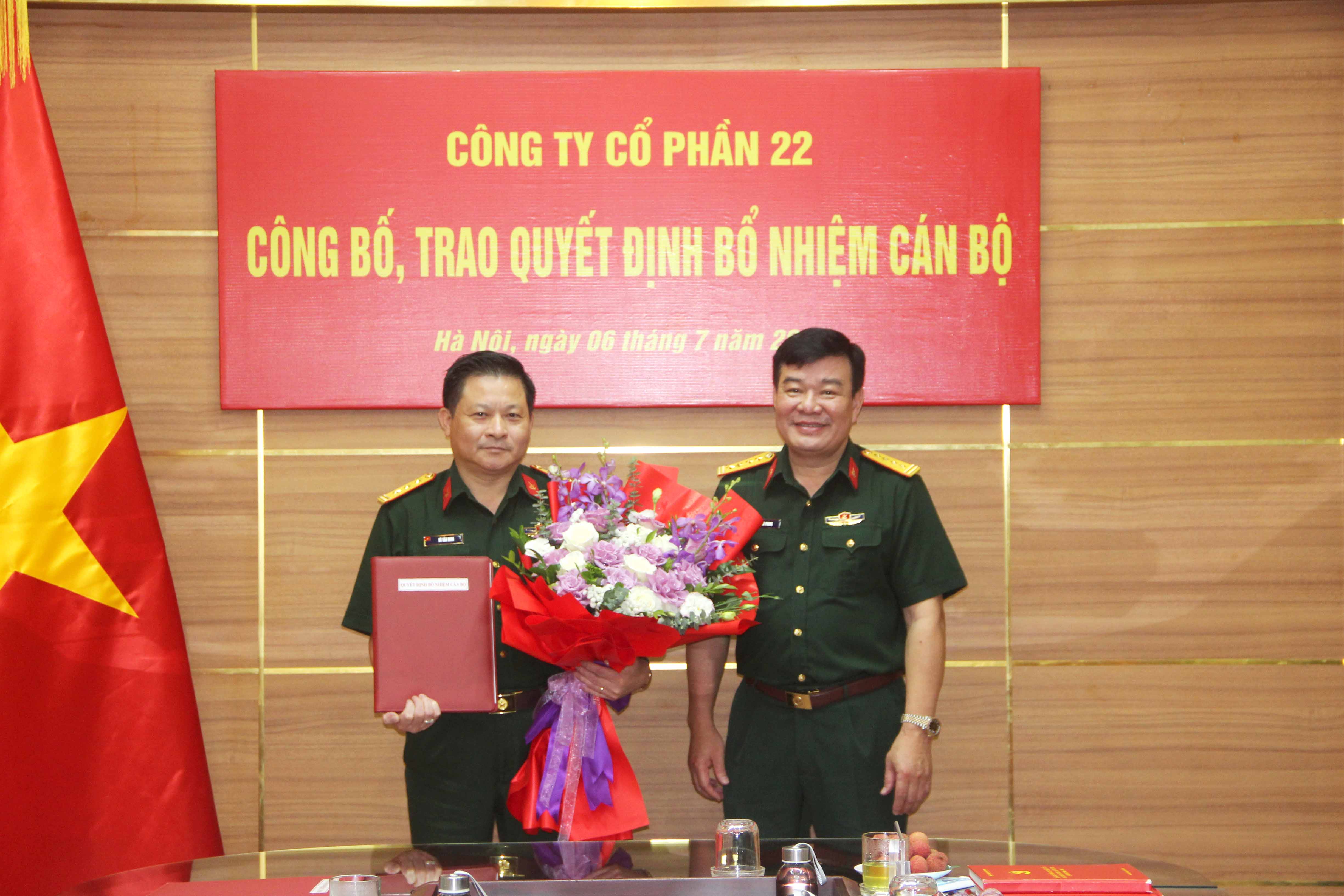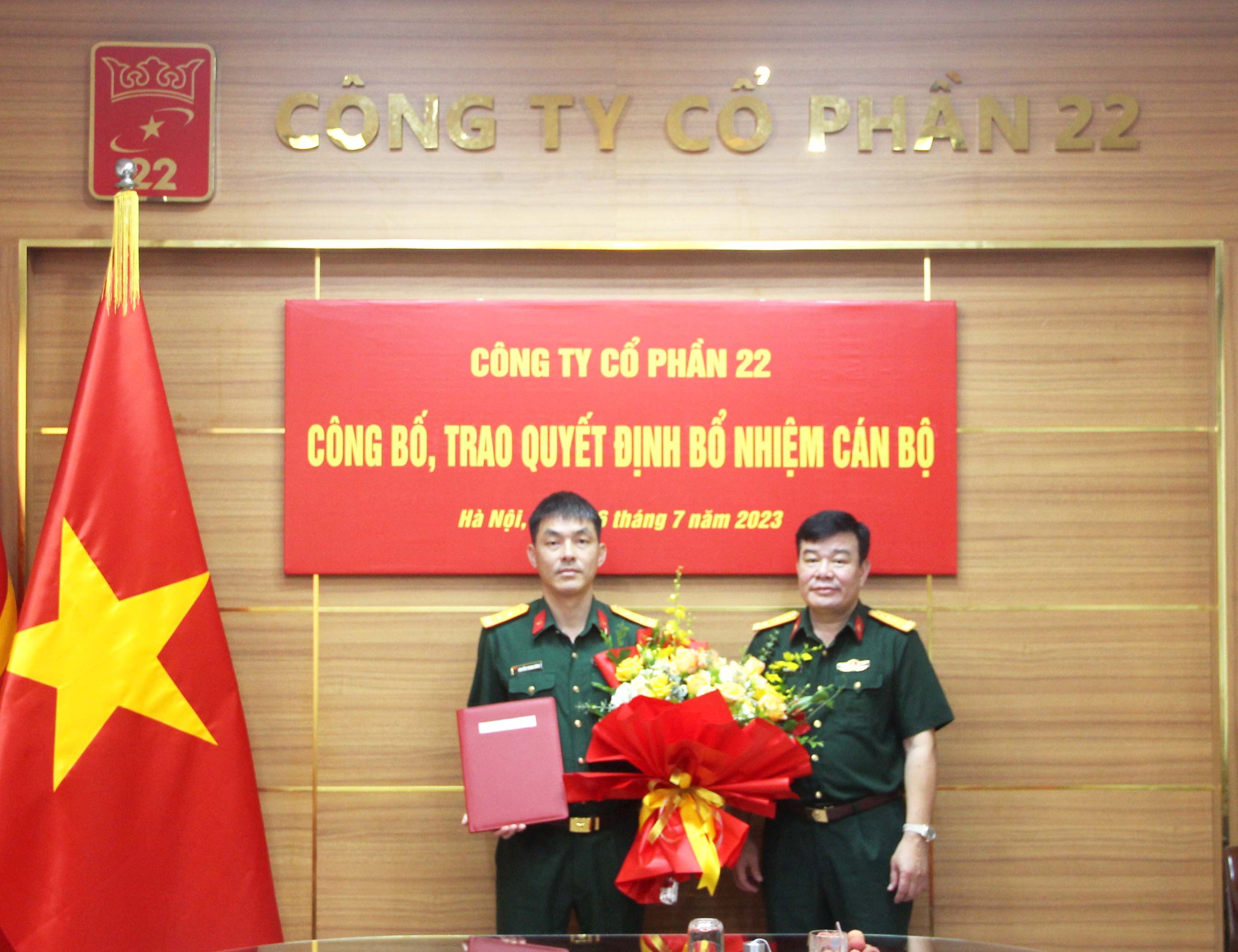 Theo các Quyết định, bổ nhiệm đồng chí Trung tá Nguyễn Trung Dũng, Phó Tổng giám đốc nay giữ chức Tổng giám đốc Công ty, đồng chí Thượng tá Vũ Văn Minh, trợ lý phòng Tuyên huấn Cục Chính trị/ Tổng cục Hậu cần được điều động về công tác tại Công ty cổ phần 22 giữ chức Phó Tổng giám đốc