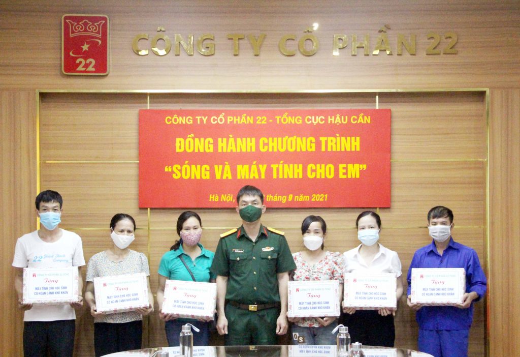 Hưởng ứng chương trình “Sóng và máy tính cho em” do Thủ tướng Chính phủ phát động, chiều 23/9/2021, Công ty cổ phần 22 đã tổ chức trao 06 bộ máy tính cho các học sinh là con em người lao động có hoàn cảnh khó khăn.