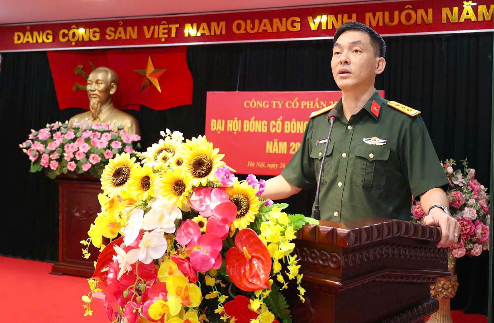 Thượng tá Nguyễn Trung Dũng, Chủ tịch Hội đồng quản trị Công ty Cổ phần 22 báo cáo tại Đại hội.