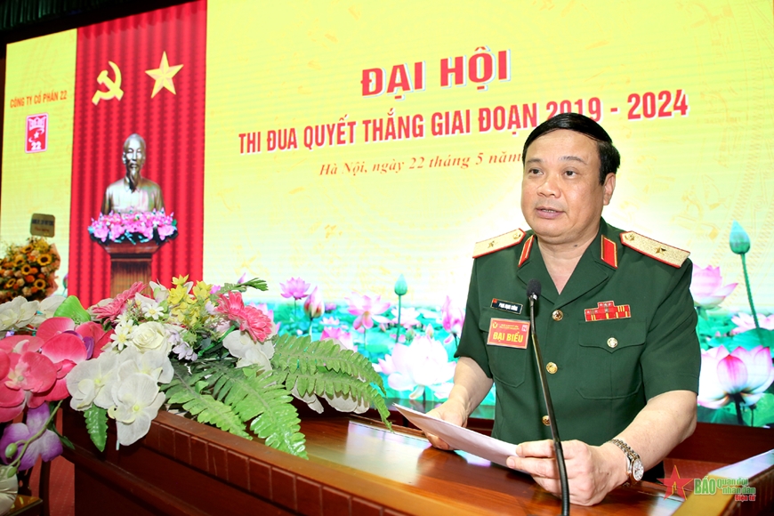 Sáng 22-5, Công ty Cổ phần 22, Tổng cục Hậu cần tổ chức Đại hội Thi đua Quyết thắng (TĐQT) giai đoạn 2019- 2024. Thiếu tướng Phạm Mạnh Cường, Phó chủ nhiệm Tổng cục Hậu cần dự và phát biểu chỉ đạo tại Đại hội.