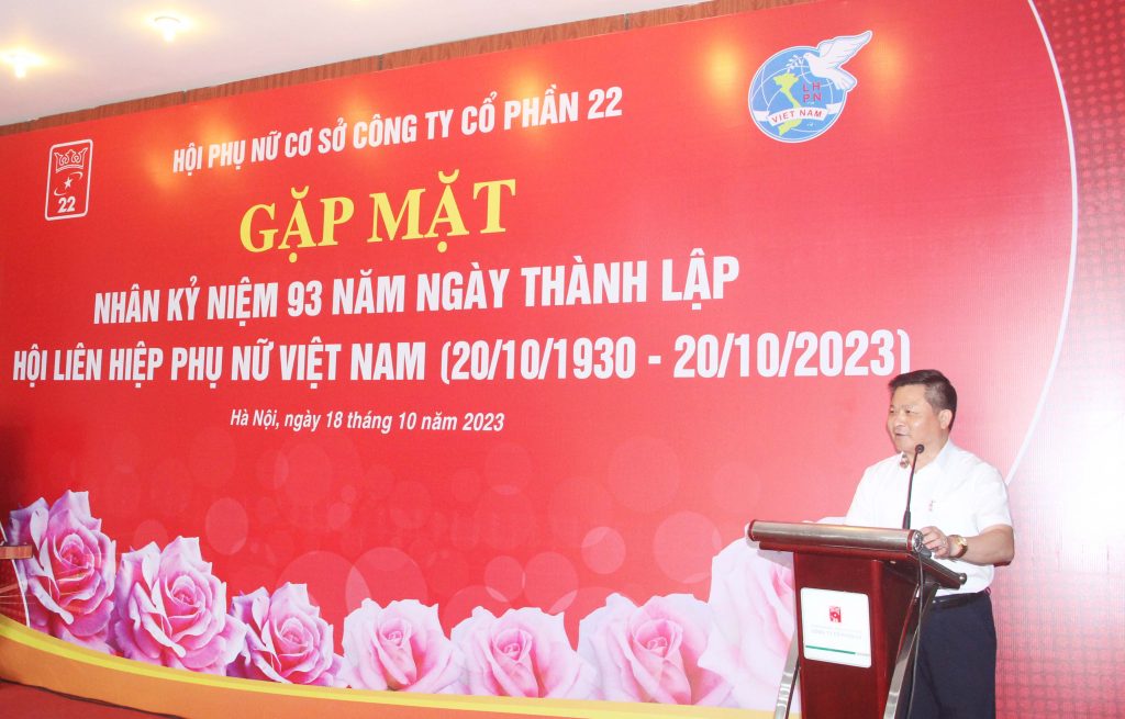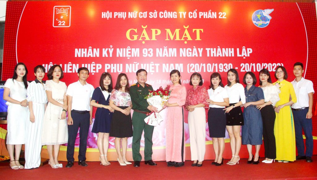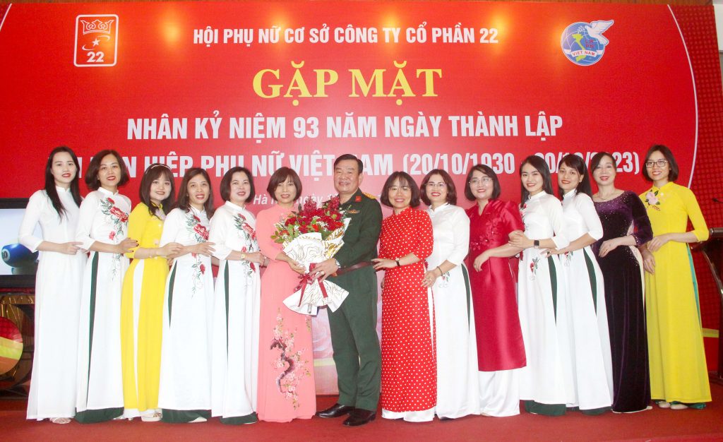 Ngày 18.10.2023, Công ty cổ phần 22 tổ chức gặp mặt cán bộ hội viên Hội phụ nữ nhân kỷ niệm 93 năm Ngày thành lập Hội Liên hiệp phụ nữ Việt Nam (20/10/1930 – 20/10/2023).