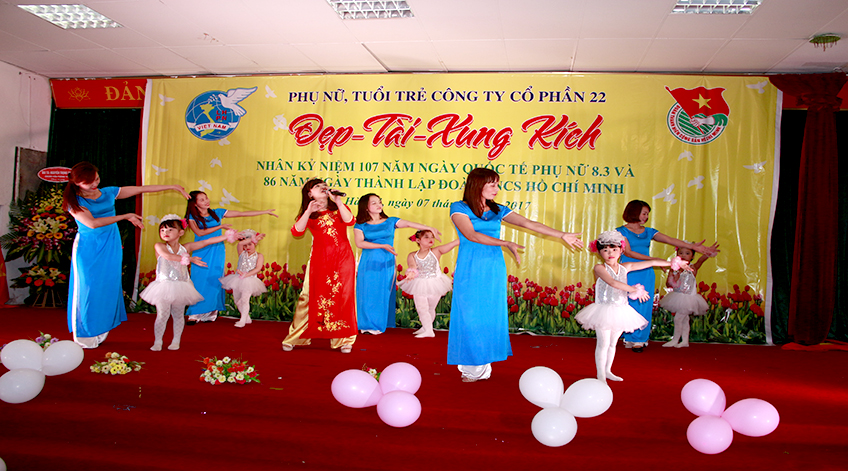 Nhân kỷ niệm 107 năm ngày Quốc tế phụ nữ và 86 năm ngày thành lập đoàn TNCS Hồ Chí Minh, Hội phụ nữ cơ sở và đoàn thanh niên CTCP 22 đã tổ chức thành Công buổi giao lưu “Đẹp – Tài – Xung kích”. Tới dự buổi giao lưu có đại biểu của Phòng Tuyên huấn và Ban thanh niên – TCHC, Lãnh đạo chỉ huy Công ty và đông đảo cán bộ, nhân viên người lao động trong Công ty.