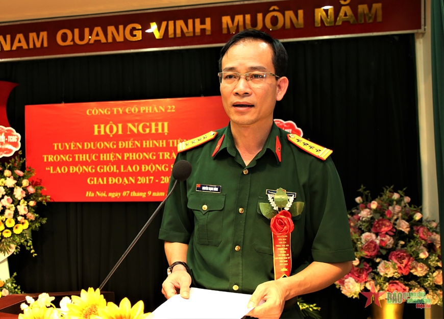 Chiều 7-9, tại Hà Nội, Công ty Cổ phần 22 (Tổng cục Hậu cần) tổ chức Hội nghị tuyên dương điển hình tiên tiến trong Phong trào thi đua “Lao động giỏi, lao động sáng tạo” giai đoạn 2017-2022.
