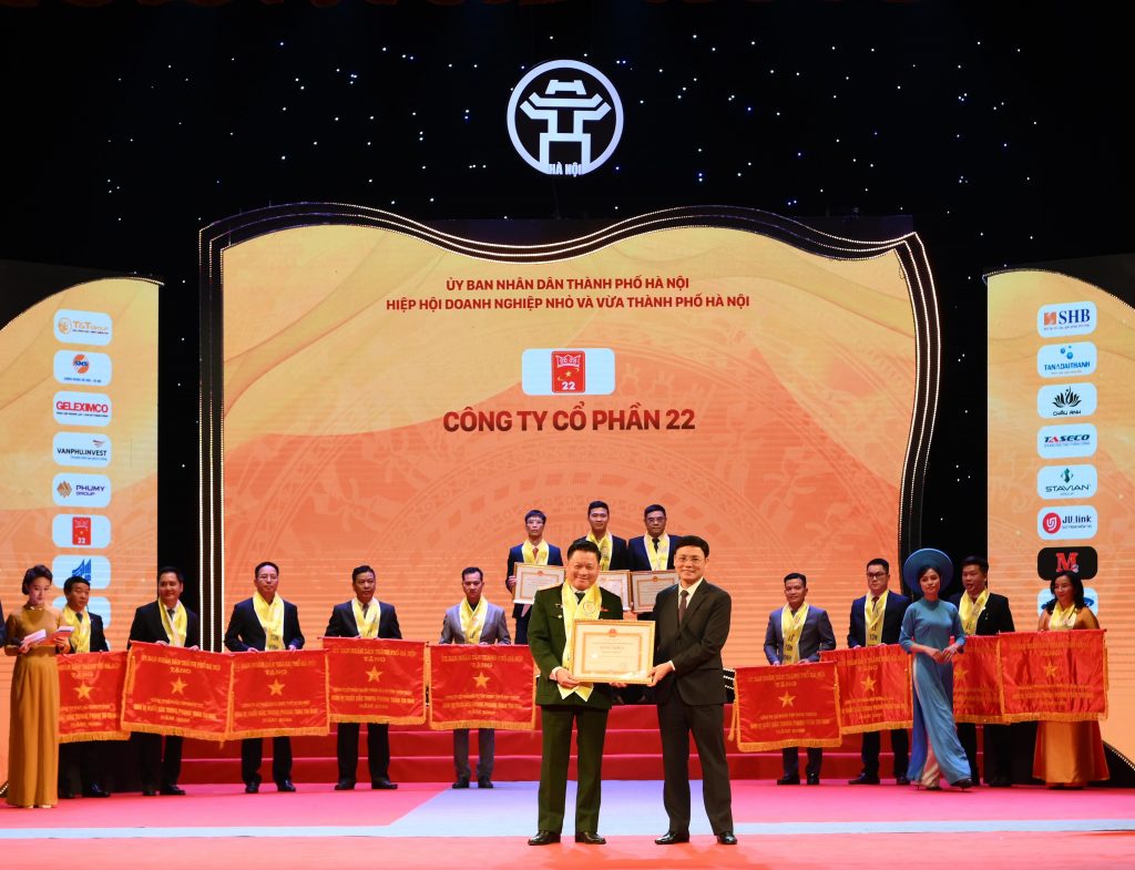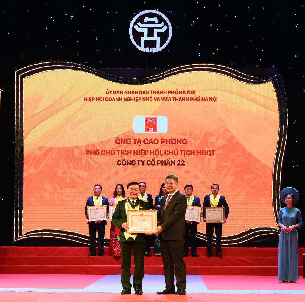 Tối ngày 17/12/2023, Lễ tôn vinh Doanh nhân, Doanh nghiệp Thăng Long năm 2023 đã được tổ chức long trọng tại nhà hát lớn Hà Nội. Công ty Cổ phần 22, cá nhân đồng chí Tạ Cao Phong – Chủ tịch HĐQT vinh dự nhận bằng khen của UBND thành phố Hà Nội vì đã có thành tích xuất sắc trong phong trào thi đua của Hiệp hội Doanh nghiệp nhỏ và vừa thành phố Hà Nội năm 2023.