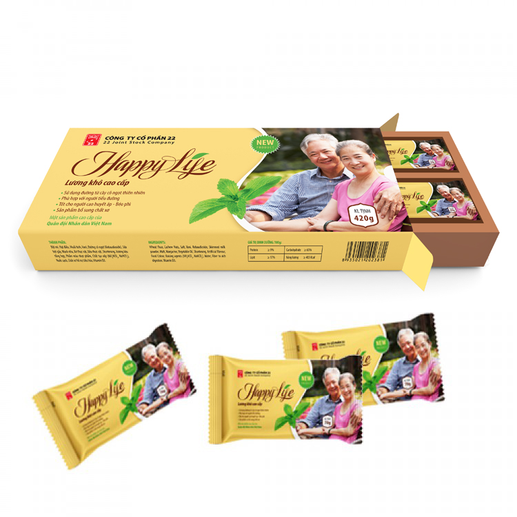 Lương khô Happylife là kết quả cụa sự kết hợp giữa nguồn nguyên liệu cao cấp với chiết xuất đường tinh khiết từ cây cỏ ngọt Stevia và các loại hạt có lợi cho tim mạch.