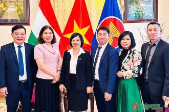 Đại tá Tạ Cao Phong (ngoài cùng bên trái) trong chuyến tham gia Đoàn giao dịch xúc tiến thương mại tại Hungary và Đức