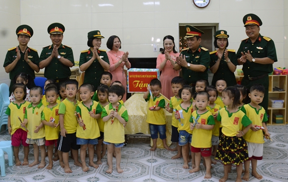 Đoàn công tác tặng quà các cháu Trường mầm non 22.