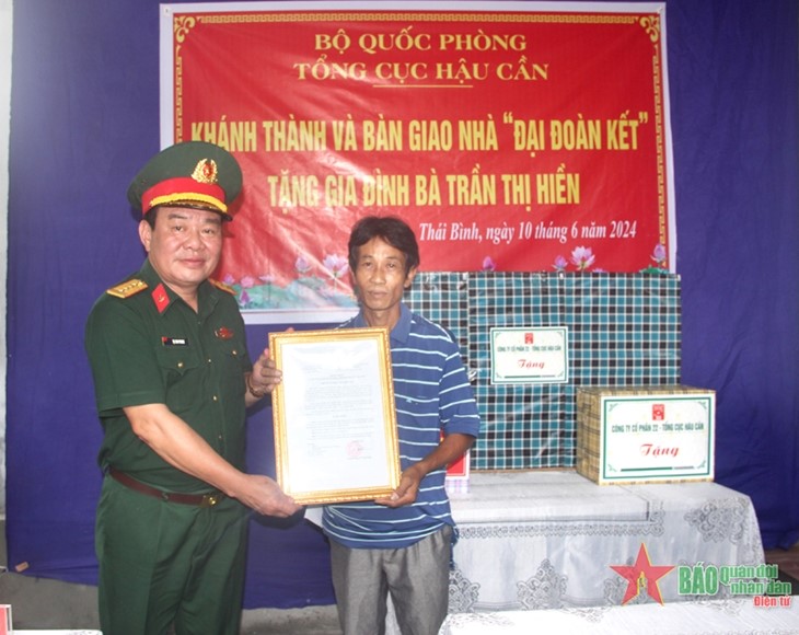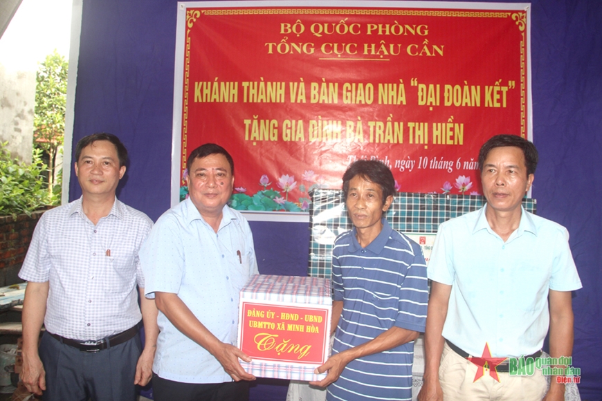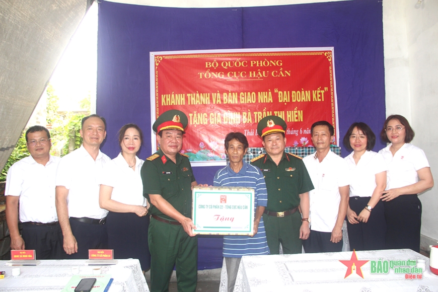 Chiều 10-6, Tổng cục Hậu cần tổ chức khánh thành và bàn giao “Nhà đại đoàn kết” tặng gia đình bà Trần Thị Hiền ở thôn Thanh Lãng, xã Minh Hòa, huyện Hưng Hà, tỉnh Thái Bình. Đại tá Tạ Cao Phong, Bí thư đảng ủy, Chủ tịch Hội đồng quản trị Công ty Cổ phần 22, thừa ủy quyền của Thủ trưởng Tổng cục Hậu cần, chủ trì lễ khánh thành, bàn giao.