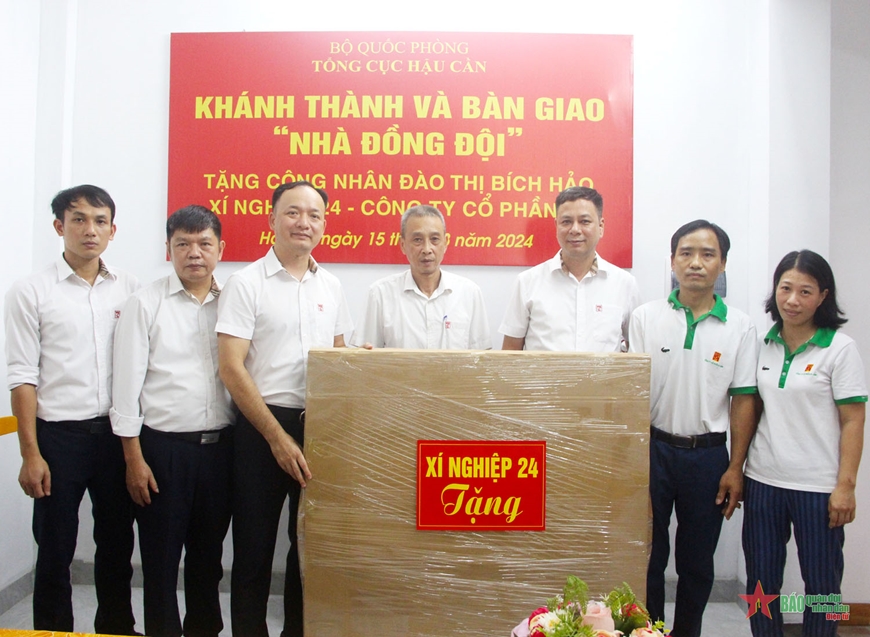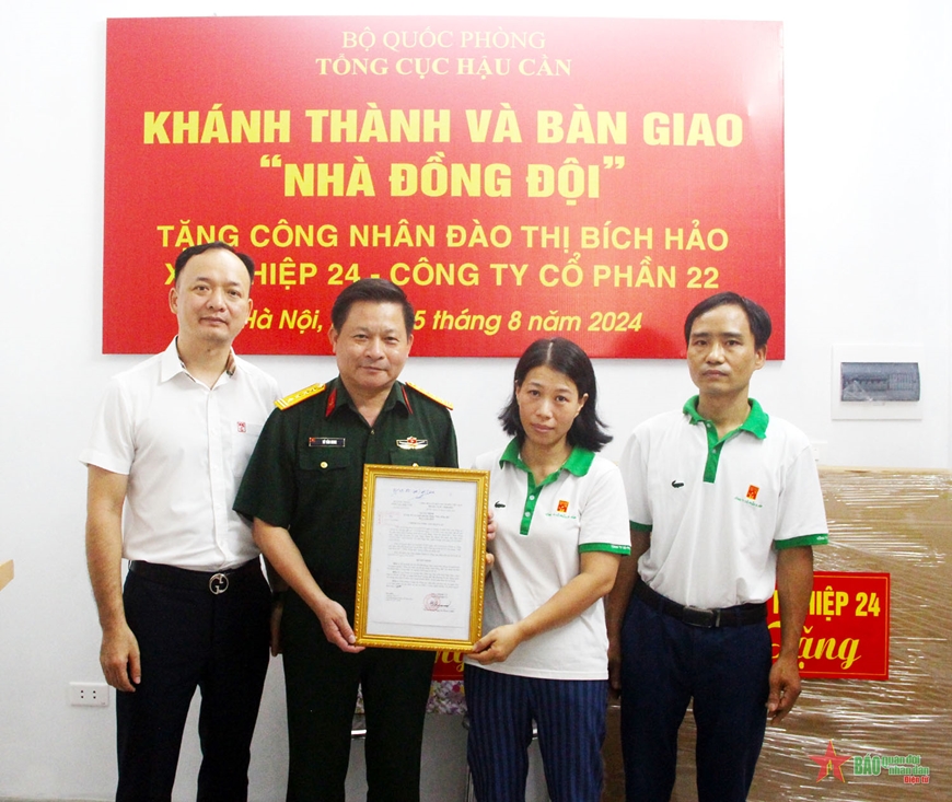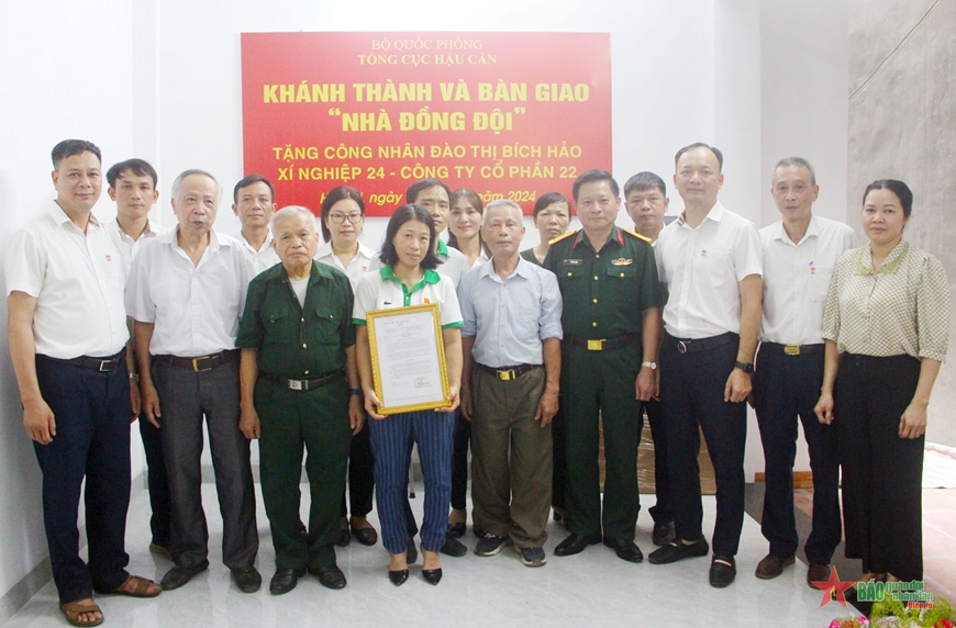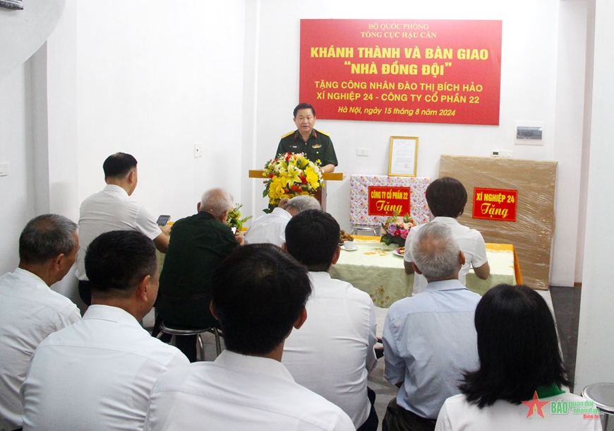 Sáng 15-8, tại phường Phú Diễn, quận Bắc Từ Liêm, TP Hà Nội, Tổng cục Hậu cần tổ chức khánh thành và bàn giao “Nhà đồng đội” tặng gia đình đồng chí Đào Thị Bích Hảo, Công nhân Xí nghiệp 24, Công ty Cổ phần 22, Tổng cục Hậu cần.